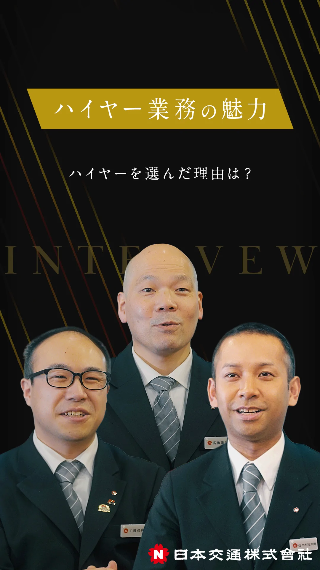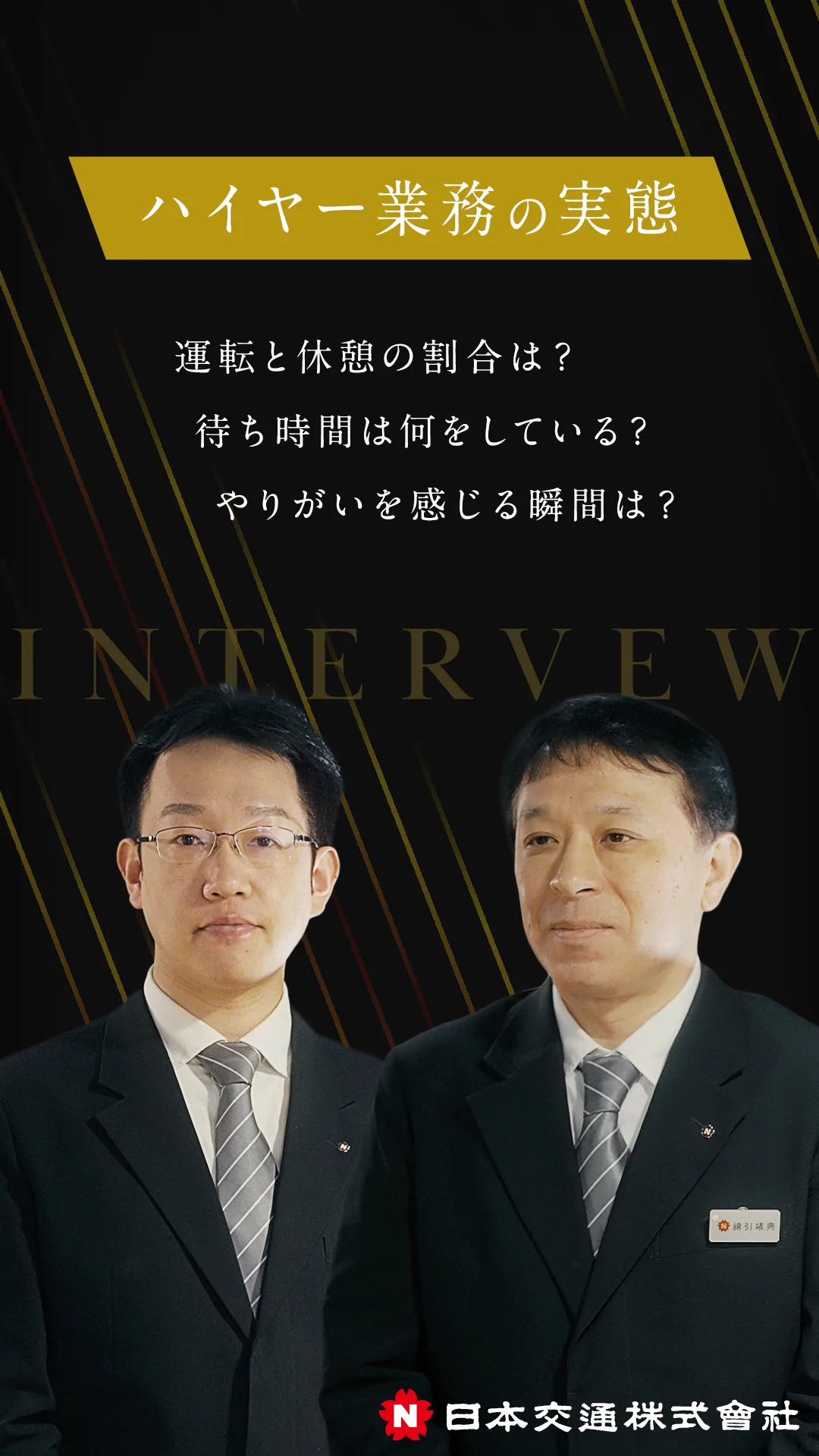 前職はアパレルの営業職でしたが、好きな運転を仕事にしようと転職しました。日本交通のハイヤーを選んだ理由は、ホテルマンのような格式高いおもてなしを提供する仕事に憧れていたからです。また、学生時代に打ち込んでいたバスケットボールで、「アシスト役」にやりがいを感じていた私にとって、主役であるVIPの方を陰で支えるこの仕事は理想の仕事だと感じました。「お客様が今、どんな雰囲気を求めているのか」を常に察し、黒子に徹してサポートする。そんなハイヤーならではの在り方に、居心地の良さを感じています。