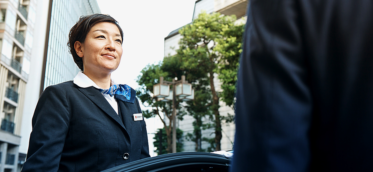 ある企業の専属ドライバーをしています。請負業務といって、スーツを着てお客様の社用車を運転するのですが、主に地方からいらっしゃったゲストを東京駅にお迎えし、都内各所を回って東京駅まで送り届けます。担当になって数年経ちますが、その企業の代表とは趣味の話で盛り上がったり、ほかの役員さまからもフランクにお話しいただける関係です。この企業からの予約がない日は、制服を着てスポット業務にあたります。車列を仕切れる日本交通は、大使館からの業務依頼も多く、先日も国際会議に参加される要人の送迎を担当しました。車列時の運転は、日常業務とは異なるテクニックが必要となり緊張もしますが、普段できない経験に刺激をもらいます。元々、女性ドライバーが少ないため、国家行事では特に目立つようで、「この前の国際会議にもいたよね」と、大使館の方からお声掛けいただいたり、私を見つけると手を振ってくださったり、フレンドリーに接していただけます。うれしくなって、こちらも手を振り返しそうになるのをぐっとこらえています(笑)。仕事の上で性別は関係ないという思いで業務にあたっていますが、物珍しさからお客様に親しくしていただけることが多いので、怠慢にならないように気を引き締めています。
